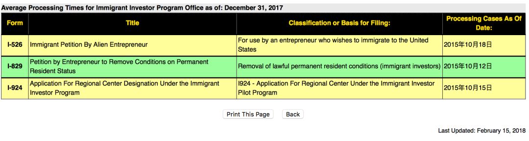 1. I-526申請,處理到2015年10月18日,後退二月;